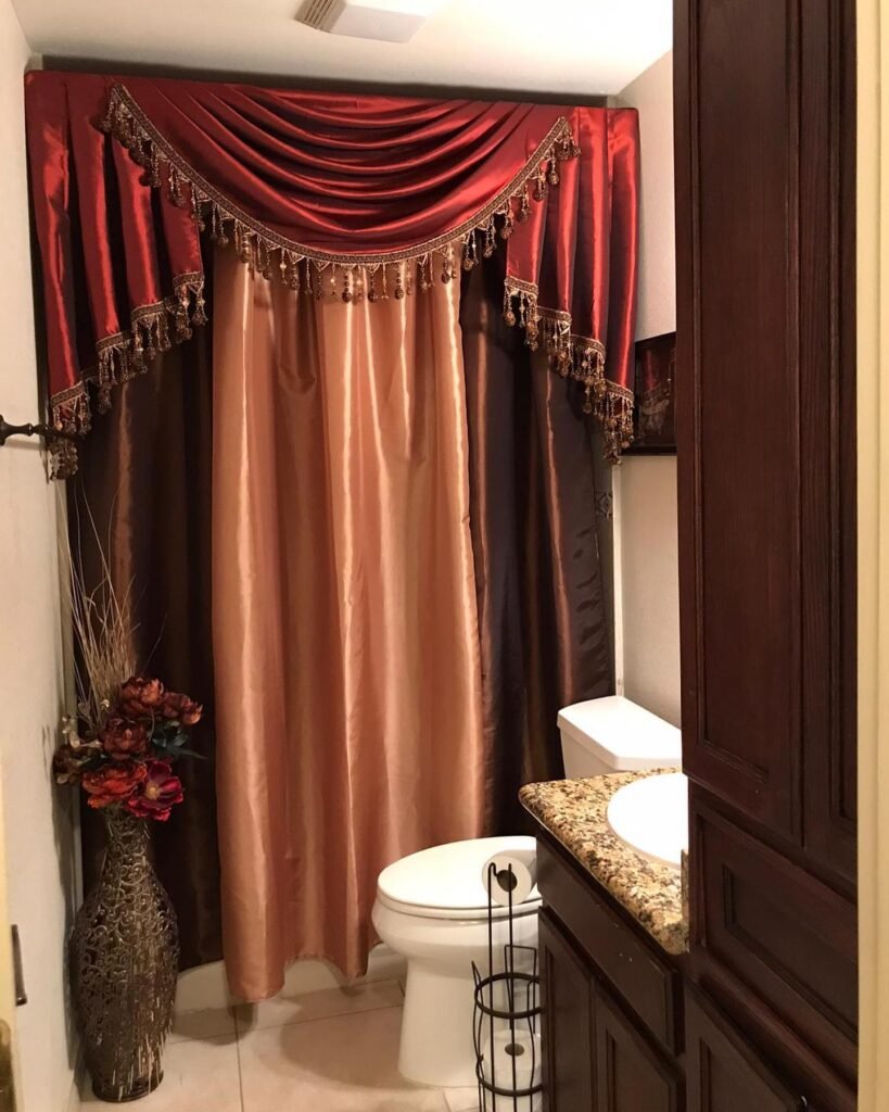 For larger bathrooms or those with high ceilings, floor-length curtains can create a dramatic and luxurious effect.