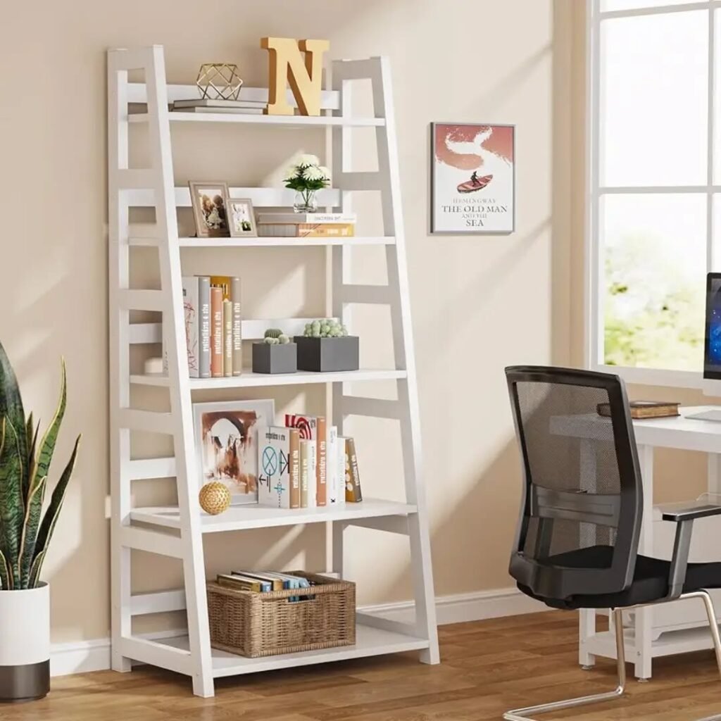4. Ladder Bookshelf Creates Vertical Storage Magic