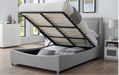 The sleek gray fabric and clean lines maintain a modern aesthetic while hiding storage completely from view. The lift system makes accessing stored items effortless, unlike traditional under-bed storage that requires crawling or awkward reaching.