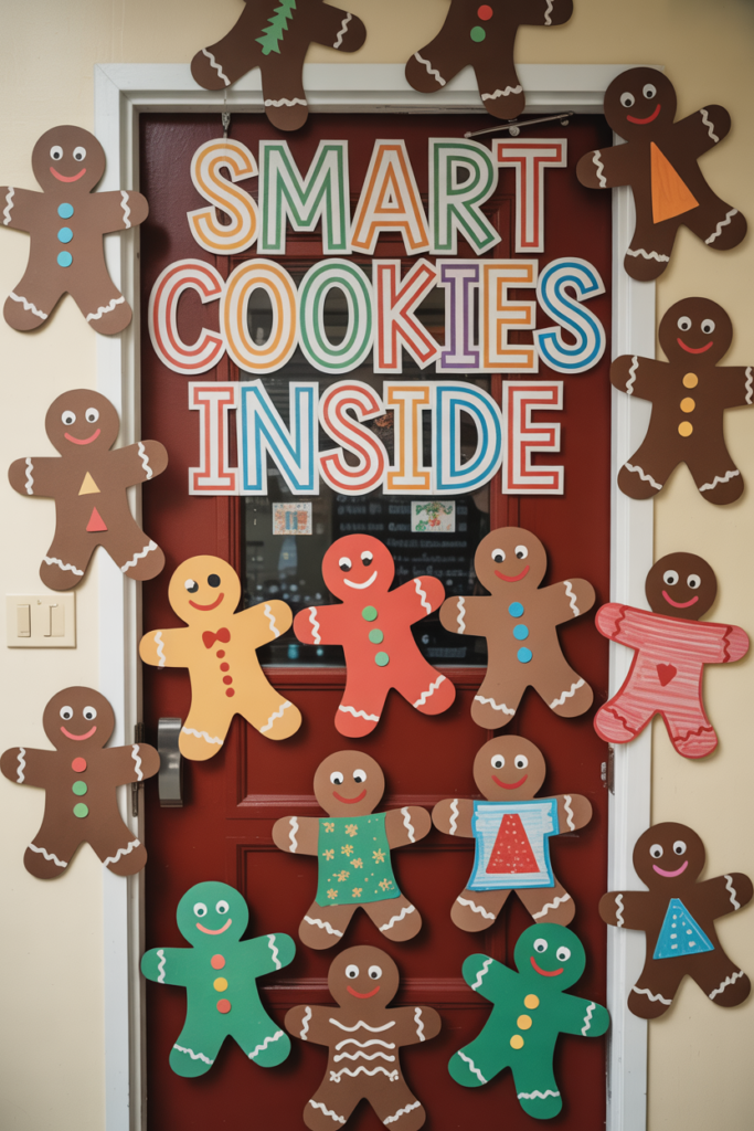 I use gingerbread people cutouts with this sweet pun that celebrates my students’ intelligence. Each student gets to decorate their own gingerbread person, making every cookie unique and special.
