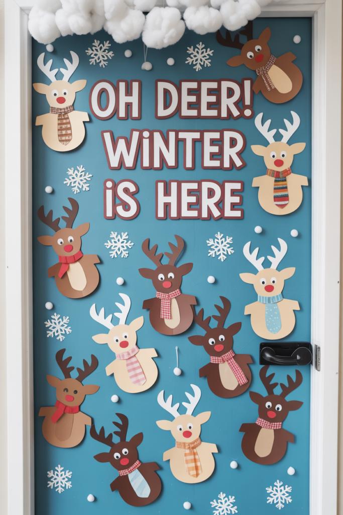 I create this inclusive winter theme using reindeer cutouts that focus on the season rather than specific holidays. Students can decorate their own reindeer to add to the display, making everyone feel included.