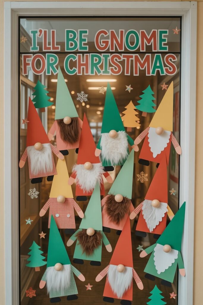 I display all these personalized gnomes across the door with the punny heading “I’ll Be Gnome For Christmas.” This collaborative approach makes every student feel like they contributed to creating something special.