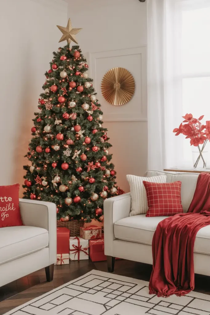 Pairing it with simple silver and white ornaments creates a look that feels both timeless and personal.