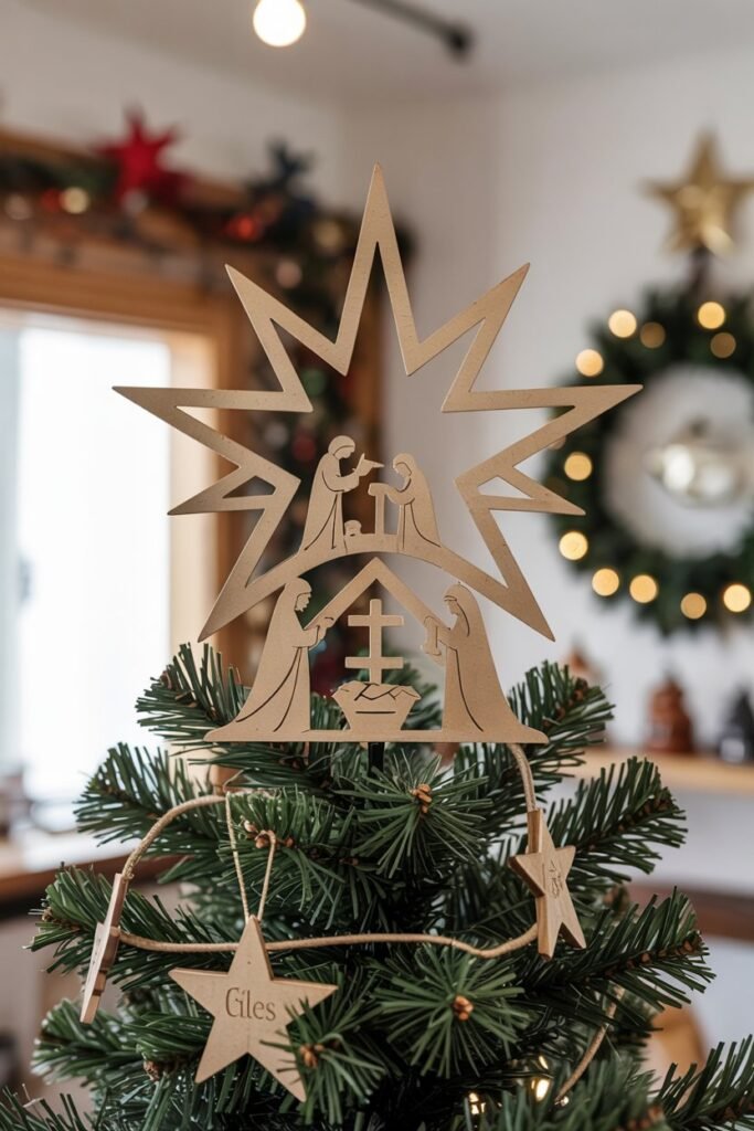 Combine two powerful traditional symbols into one with a nativity star topper.