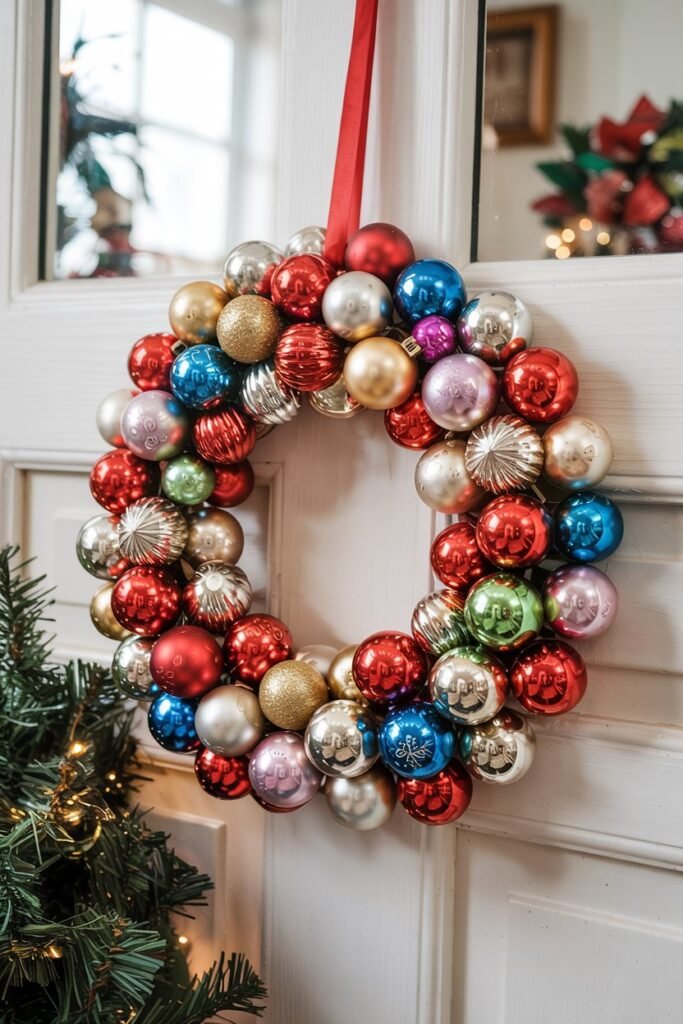 Arrange them on a wreath form for a dazzling display that catches the light beautifully, turning your entryway into a luxurious statement. This glamorous option adds a dose of luxury and festive glow to your holiday decor.