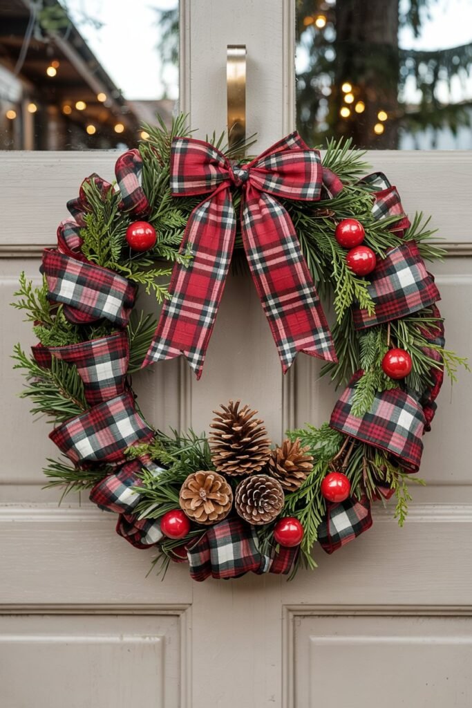 Nothing says cozy Christmas quite like plaid. Wrap a wreath form in plaid fabric or ribbon for a warm, traditional feel. This works especially well with classic red and black buffalo check.