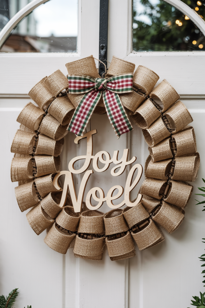 You can leave it as is for a simple, country-chic vibe or add embellishments like a plaid bow, wooden lettering that spells out “Joy” or “Noel,” or even some natural jute twine accents.