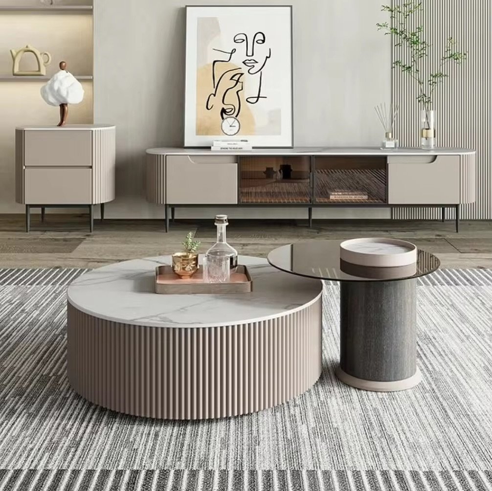 This setup is giving me serious design envy! That round coffee table with the fluted base is absolutely stunning – it’s like sculptural art that happens to hold your stuff.