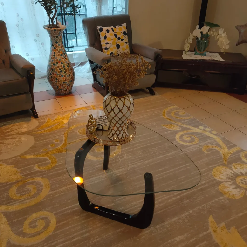 Okay, this is giving me major vintage vibes and I’m totally digging it! That curved glass coffee table is like something straight out of the 70s – in the best possible way.