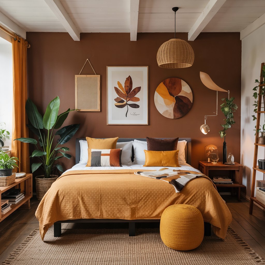 Lean into brown’s warm, coppery undertones by pairing it with orange or rust shades. This combination reflects the vibrant beauty of autumn while remaining adaptable year-round.