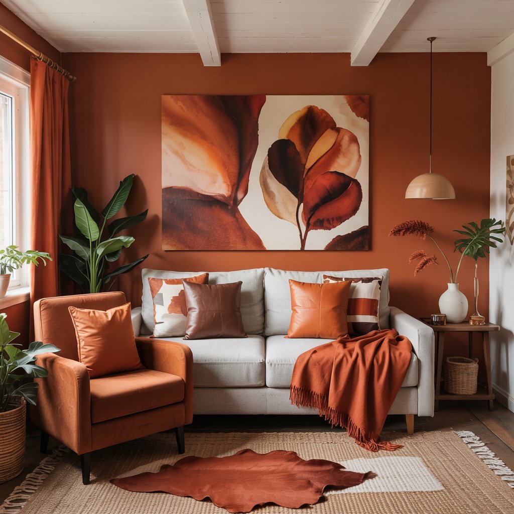 Terracotta accessories, burnt orange textiles, or rust-colored artwork all add a sense of depth and warmth, perfectly complementing brown furniture or finishes.