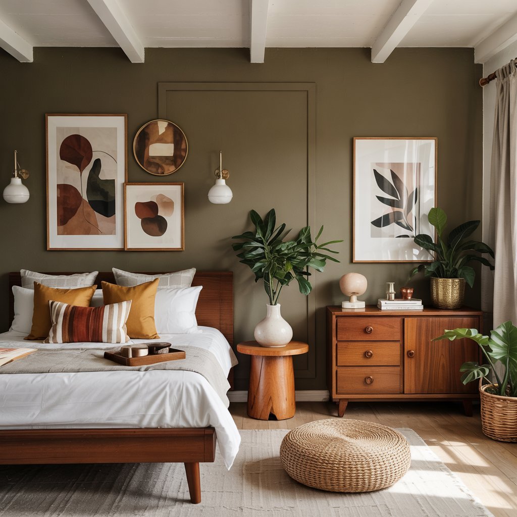 Olive green brings a vintage-inspired feel when paired with brown. This combination works particularly well in midcentury modern spaces or when you’re going for a retro aesthetic.