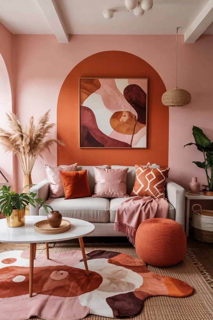 Using burnt orange with pink can create a space that’s both bold and stylish without being overwhelming. I like to pair these colors in cushions or rugs to add depth and warmth.