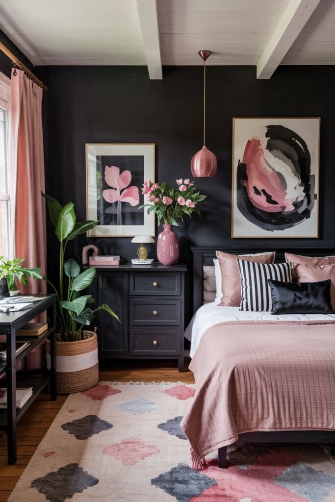 When I want pink to stand out, I often pick an accent wall or a piece of furniture in a contrasting or complementary color. For example, a soft blush pink wall paired with navy blue or emerald green furniture creates a rich, sophisticated vibe. Darker hues like these really anchor the space and prevent the pink from feeling too sweet or overwhelming.