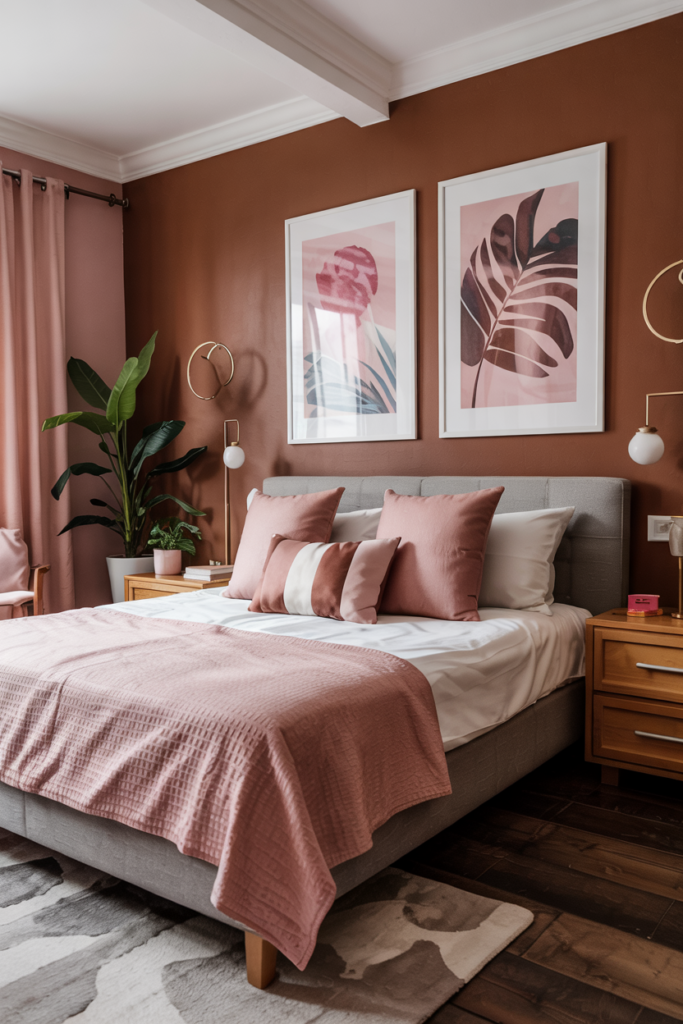 I really like how chocolate brown adds depth when paired with pink. The rich, warm tone of chocolate brown creates a nice contrast with both soft and bright pinks. It feels cozy and grounded without overwhelming the space.