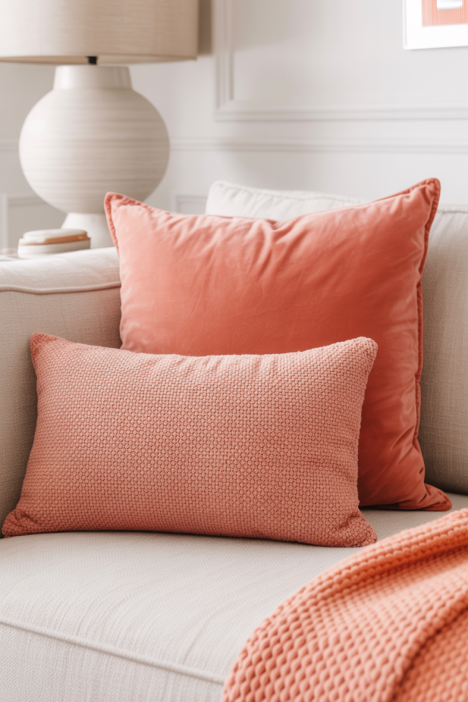 When I add coral accents like cushions or throws, it instantly brightens up the space without clashing. It’s a great way to bring energy without going overboard.