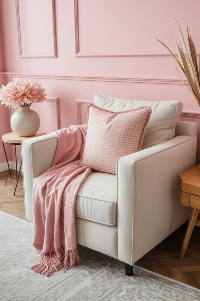 I like using soft gray as a base color for walls or larger furniture pieces. Then, I add pink accents like pillows, throws, or small decor items. It keeps things modern but still warm.
