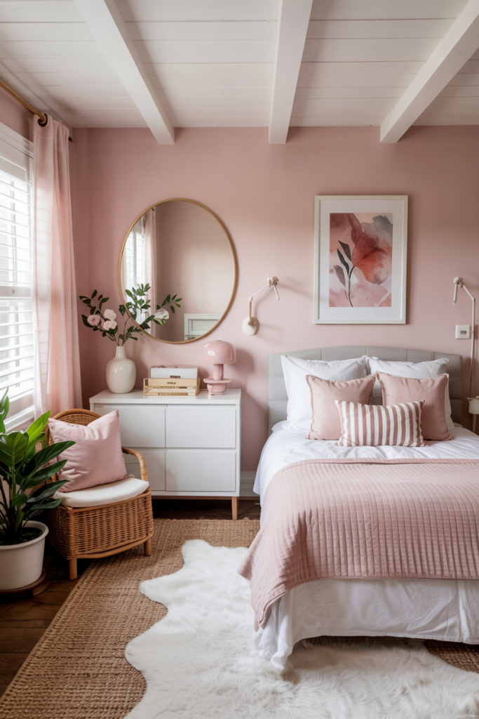 When I pair these two, I tend to stick with muted or dusty pinks rather than super bright ones. This keeps the space feeling fresh and inviting. The combination feels modern but still has a cozy, approachable feel.