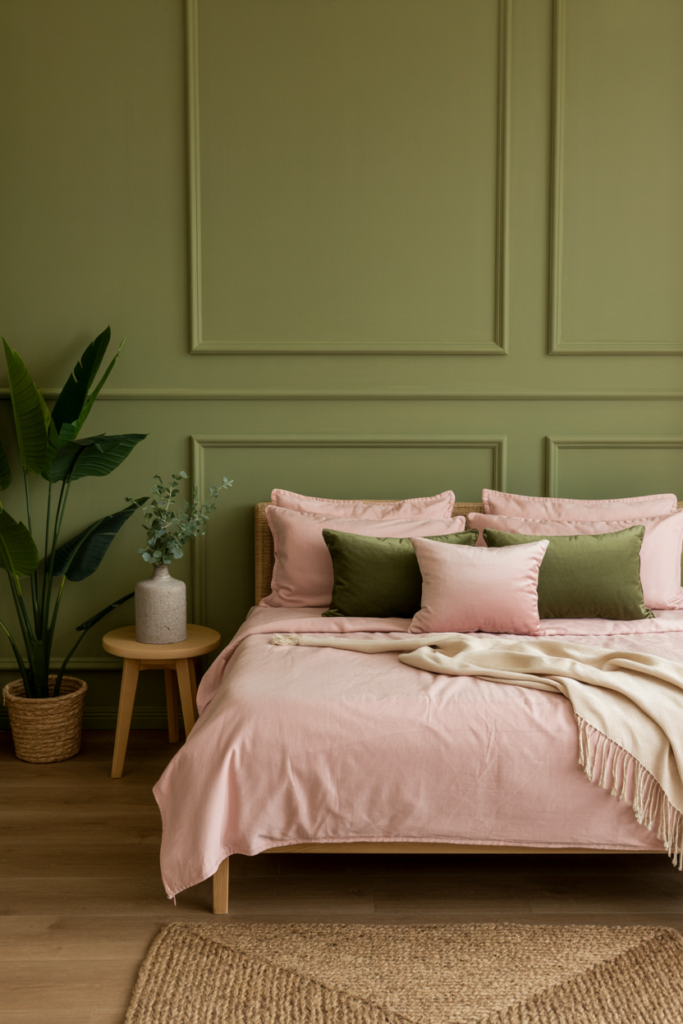When I add blush pink accents like pillows or throws against olive walls or furniture, it feels calm and inviting. The combo works great for bedrooms or living rooms where I want a relaxed but stylish vibe.