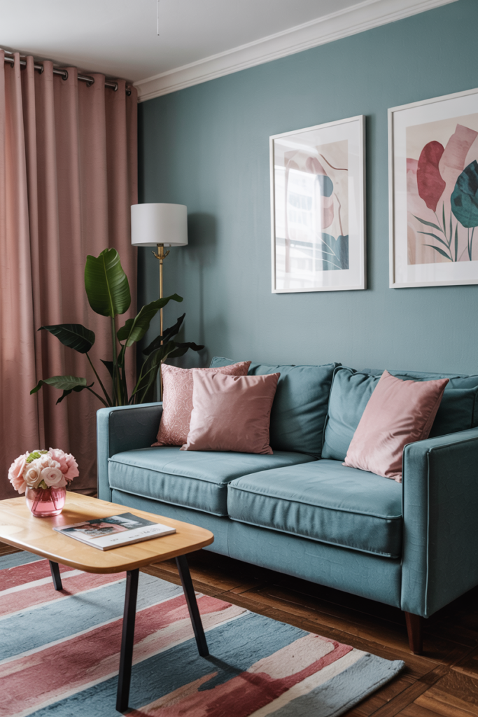 I really like how teal and pink work together in home decor. Teal, being a mix of blue and green, adds a calming and cool vibe that balances the warmth and softness of pink. Using teal on larger elements like walls or sofas, with pink accents like pillows or artwork, creates a nice contrast without feeling overpowering.