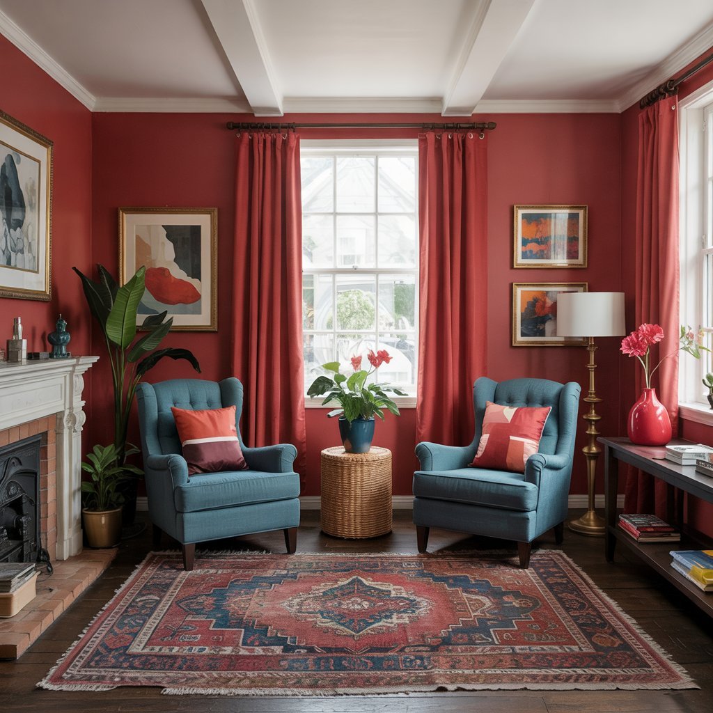 I recommend using white as a neutral base to let both colors shine. Try placing teal armchairs in a living room with a red accent rug. The combination feels cozy yet sophisticated, and it’s particularly effective in spaces where you want energy without overwhelming the senses.