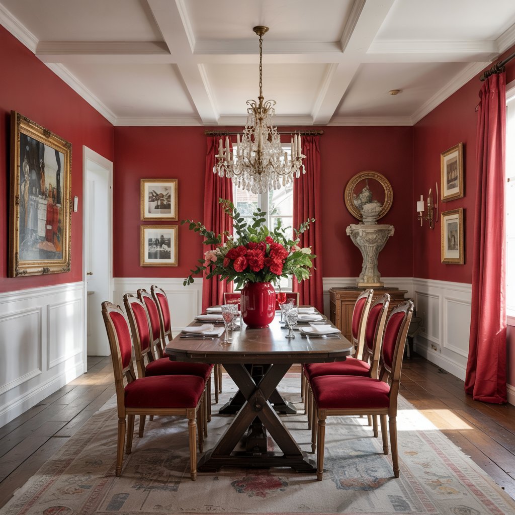 I often use white wainscoting or crown molding to temper bold crimson walls in dining rooms. The contrast creates visual interest while maintaining elegance. White also reflects light beautifully, making rooms feel larger and brighter even with intense red accents.