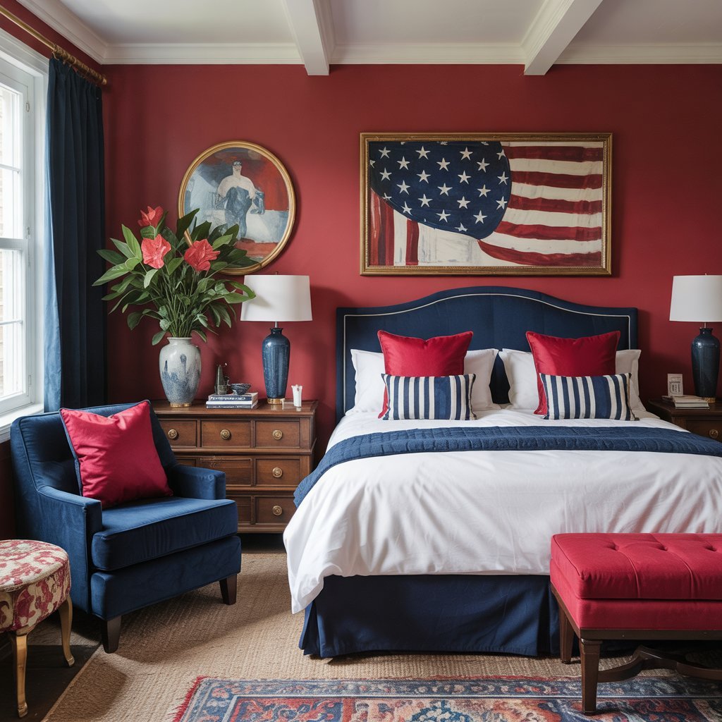 Navy and red form a timeless, patriotic palette that never goes out of style. I find this combination works exceptionally well in traditional and contemporary spaces alike.