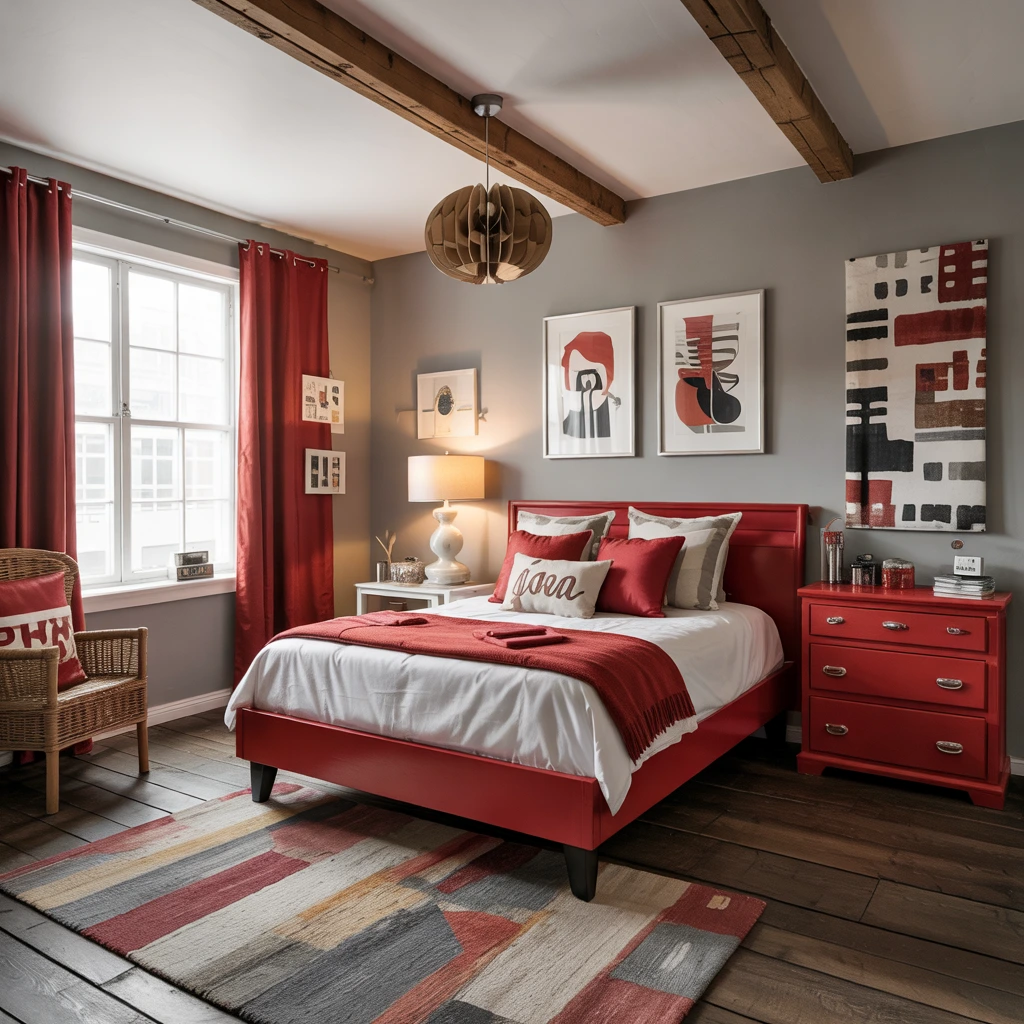 Try ruby red pillows alongside dusty rose bedding and navy accents. The effect is inviting and restful rather than stimulating. This combination proves that red doesn’t have to be loud—it can be sophisticated and calming when paired thoughtfully.