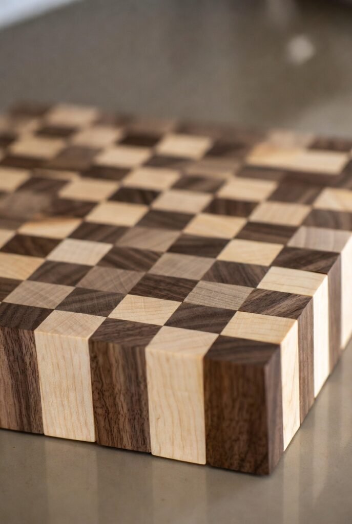 If you enjoy precision woodworking, you’ll love creating a cutting block with geometric inlays. I cut small, contrasting wood pieces—like walnut, maple, and cherry—into shapes like triangles, hexagons, or diamonds and fit them together.