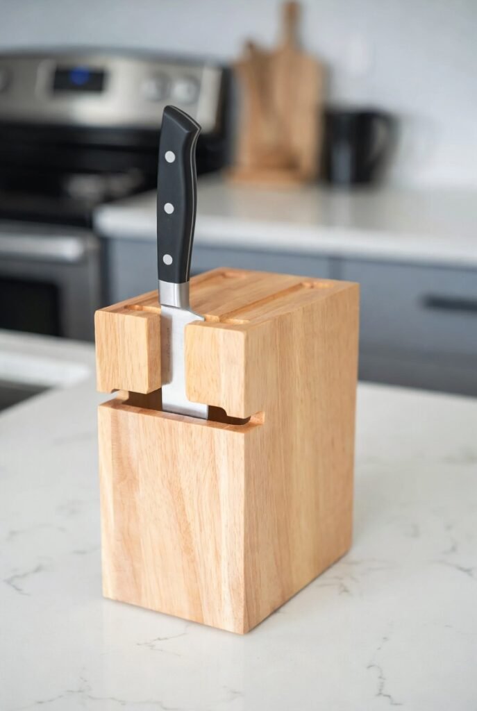 For ultimate convenience, I sometimes design a cutting block with built-in knife storage. I create a thicker block and carve out a slot on one side that’s perfectly sized to hold a chef’s knife.