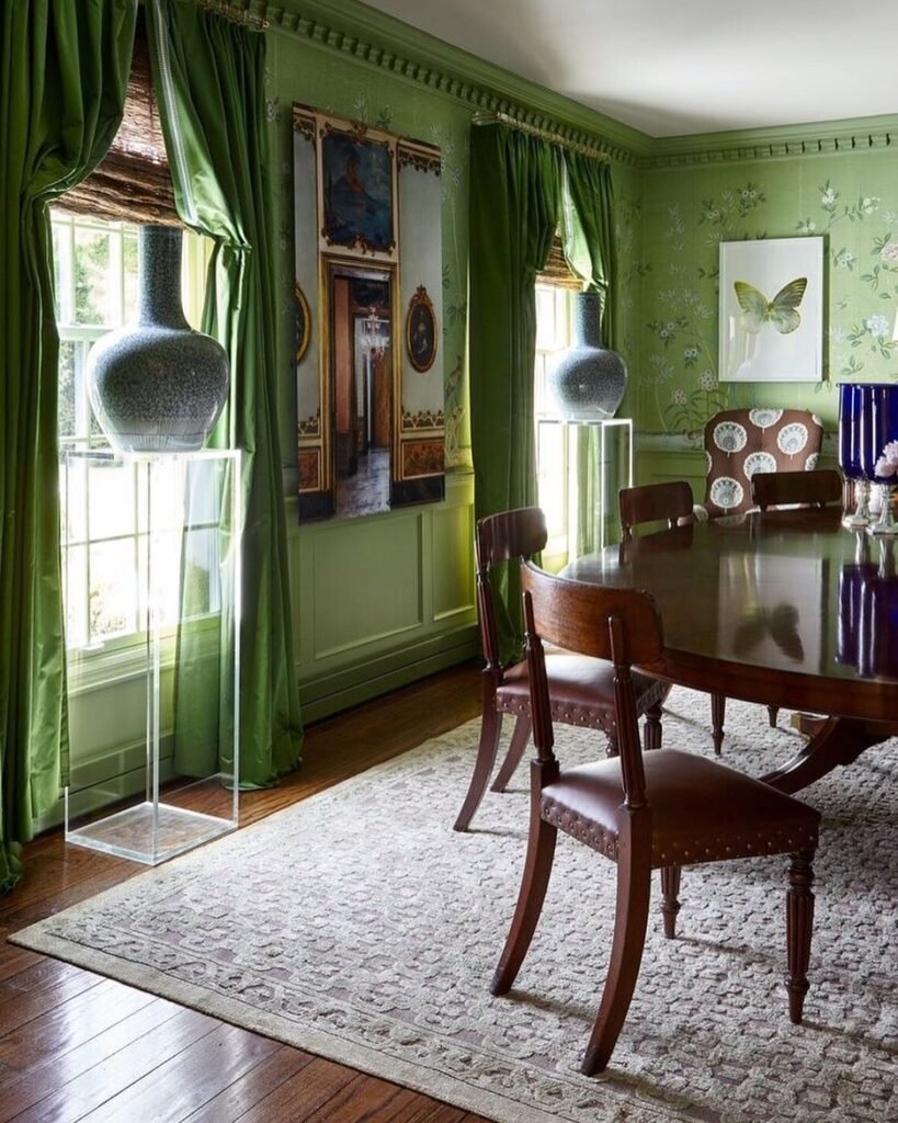 This sophisticated approach to green works especially well in formal dining spaces where you want to make a memorable impression.
