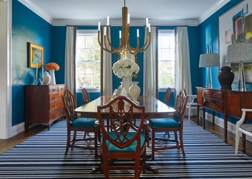 This color choice demonstrates how dining room paint color ideas can bridge traditional and contemporary styles effortlessly.