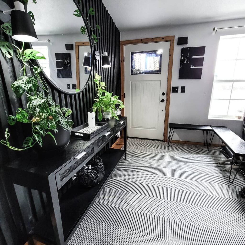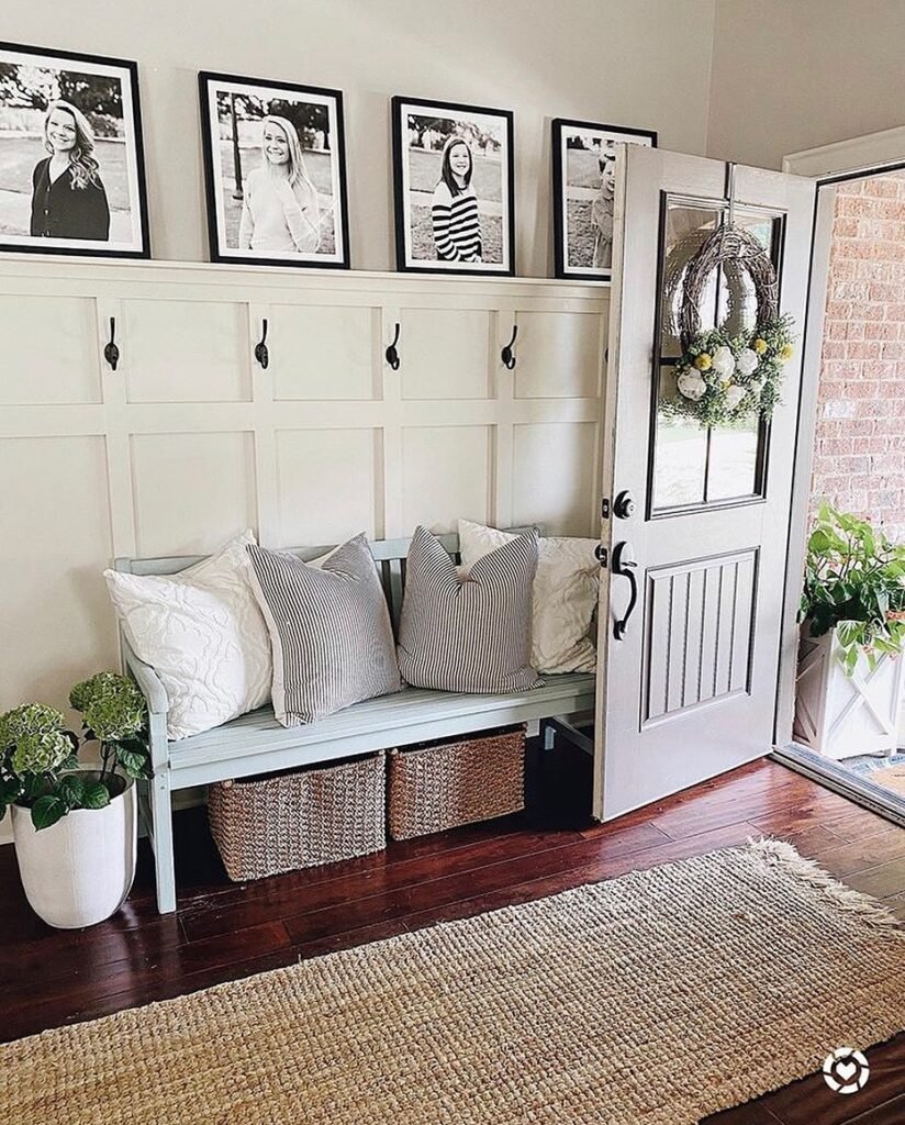 The shoe storage underneath works brilliantly for families who need quick access to footwear. That textured rug anchors the whole setup, making guests feel welcome from the moment they step inside. Smart entryway storage ideas like this prove you don’t need a massive foyer to stay organized.
