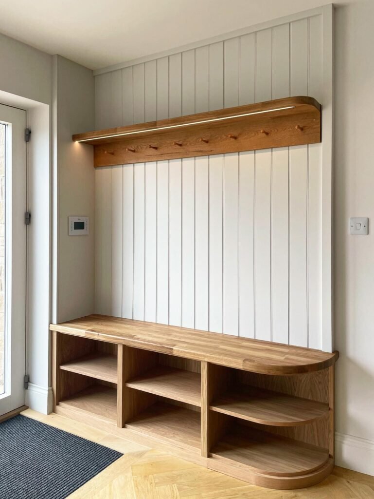 These entryway storage ideas work particularly well in homes with natural or Scandinavian-inspired decor. The handcrafted quality of each element adds character that mass-produced furniture simply cannot match. Storage becomes part of the home’s personality rather than just necessity.