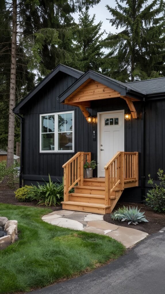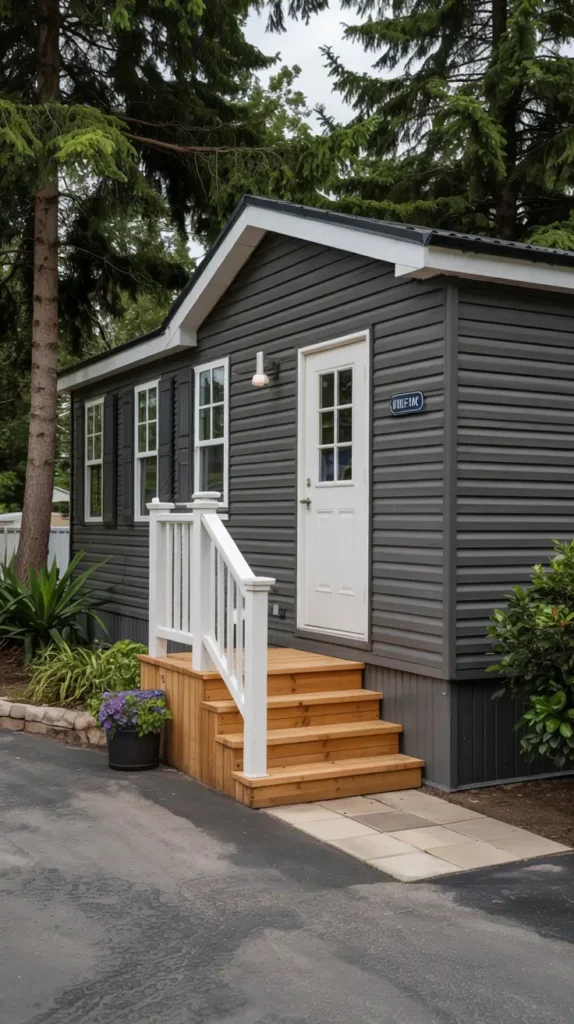 For a bold and dramatic statement, I recommend a dark gray or charcoal exterior. This color gives your mobile home a contemporary, high-end feel. It’s particularly striking when contrasted with crisp white trim, creating a look that is both strong and elegant.