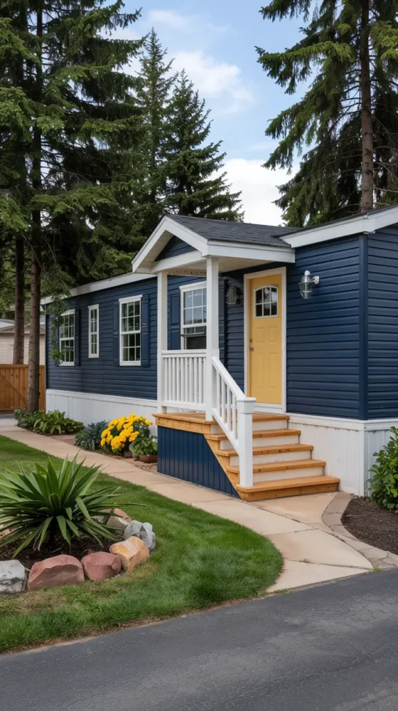 Navy blue is a classic, powerful color that exudes sophistication and confidence. It gives a mobile home a stately, distinguished appearance that I find truly impressive. When paired with bright white trim, the contrast is incredibly sharp and clean.