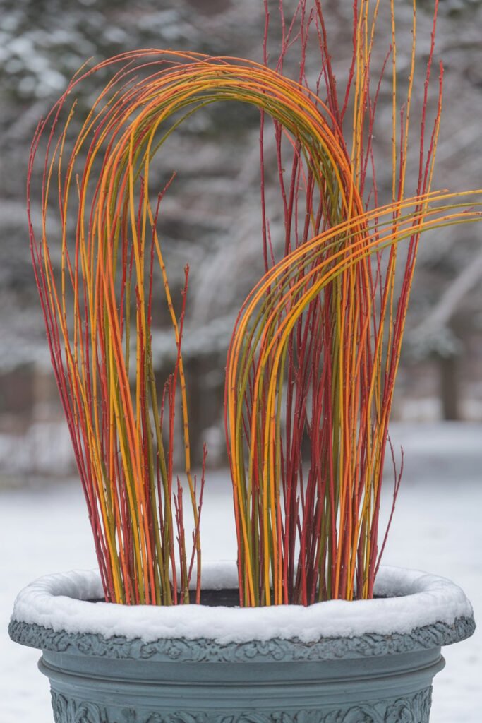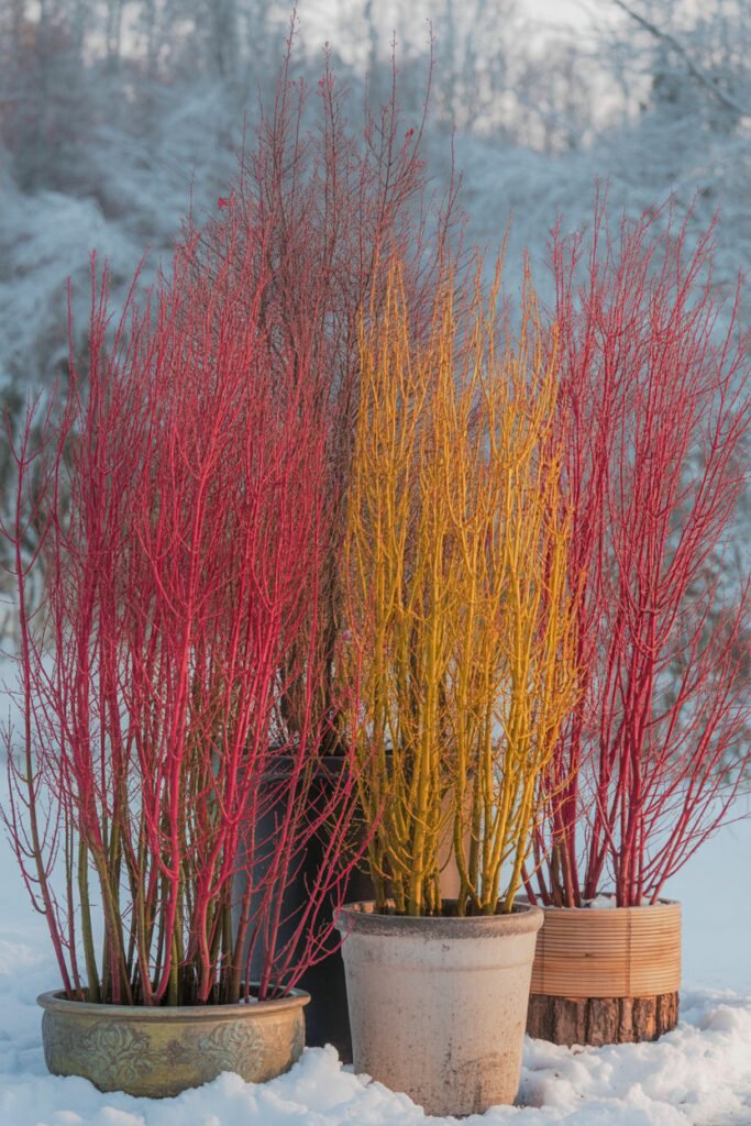 Red and yellow twig dogwoods provide brilliant color in winter gardens. I cut branches and arrange them in planters for instant impact that brightens even the grayest days.