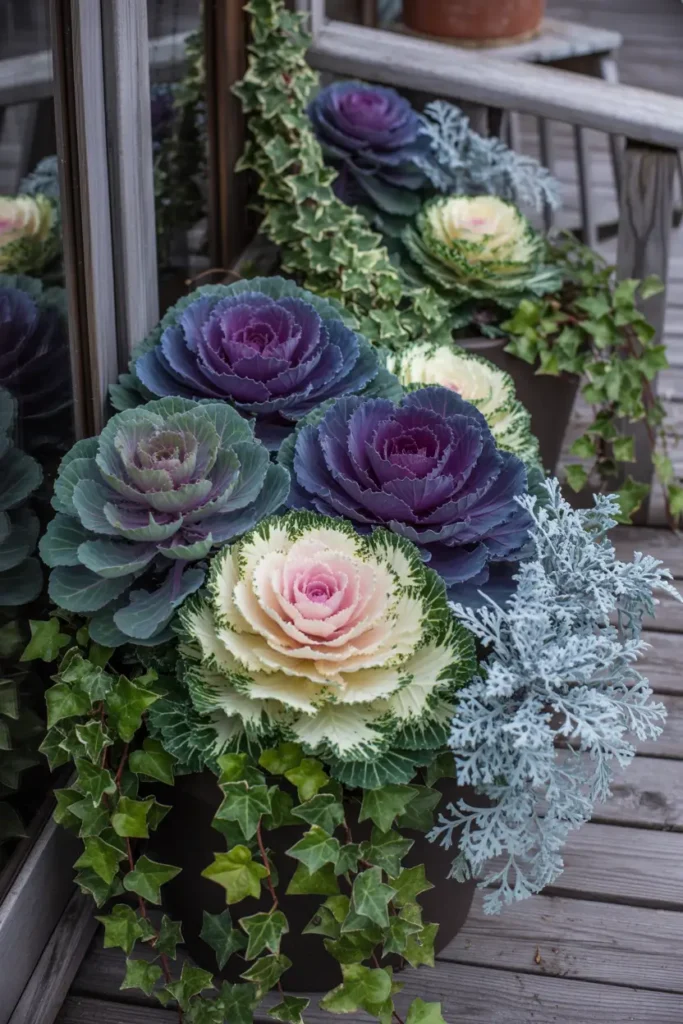 For added interest, I combine them with trailing ivy or dusty miller around the edges. This creates a full, lush appearance that lasts well into winter.