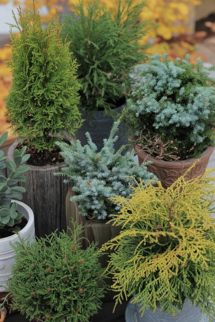 I plant dwarf conifers in various shapes and textures together to create living sculptures. Varieties like dwarf hinoki cypress, blue star juniper, and golden thread cypress offer incredible diversity.