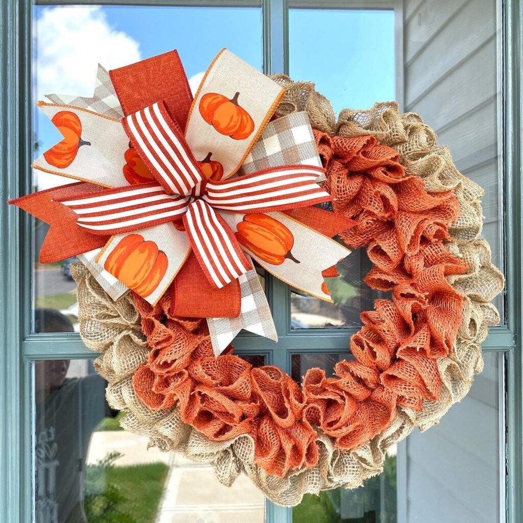 2. Burlap and Bow Pumpkin Wreath