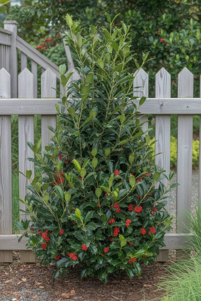 This is a powerhouse of a holly. The Nellie R. Stevens is a hybrid that grows vigorously, up to 3 feet per year, into a large, dense pyramid shape. Its dark, glossy green leaves are a classic, and it produces bright red berries in the winter.