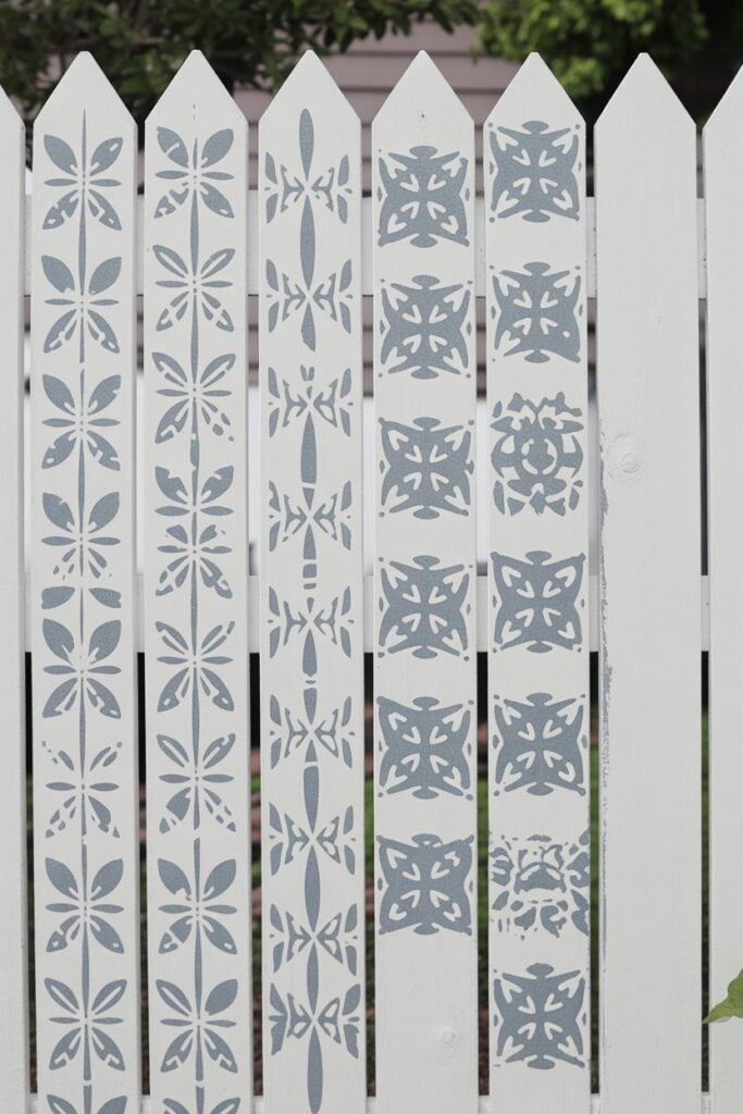 A classic white fence offers timeless appeal and a clean backdrop for decorative elements. When combined with stenciled patterns, it adds a subtle yet personalized touch without overwhelming the design.