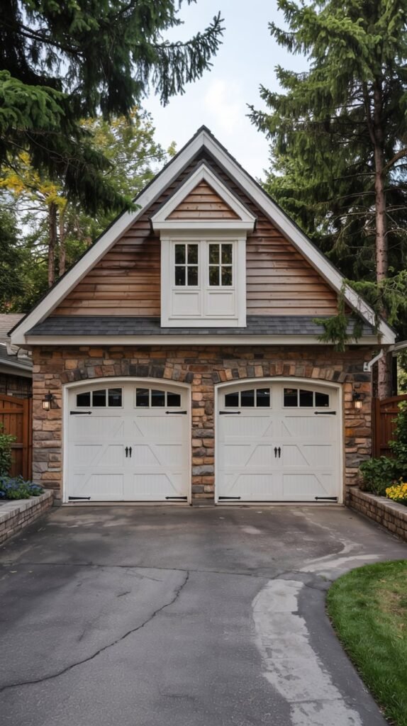 Pairing a rustic dormer with board-and-batten siding or stone accents can create a beautiful, textured look. It’s a great way to infuse your garage with character and make it feel more like a charming country barn or cottage.