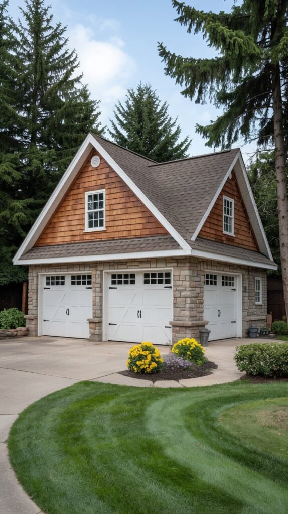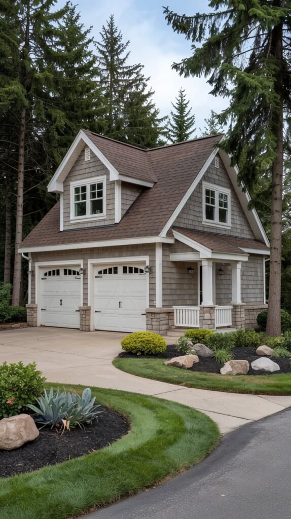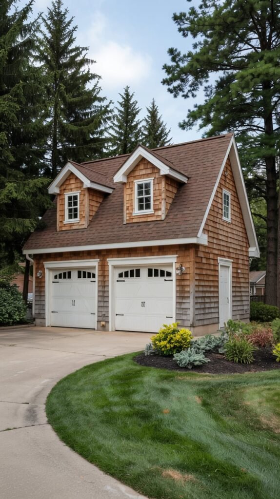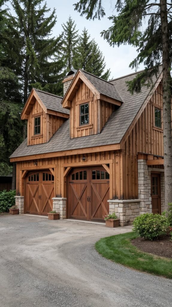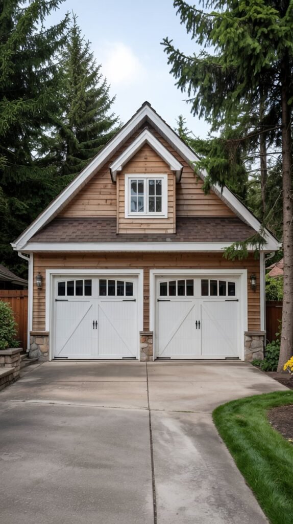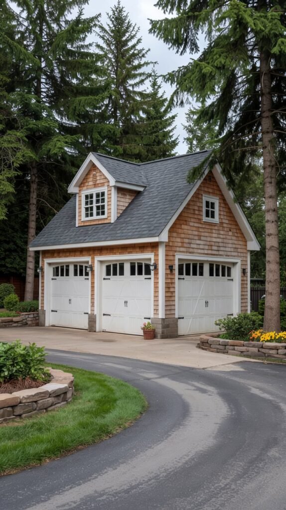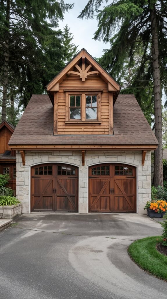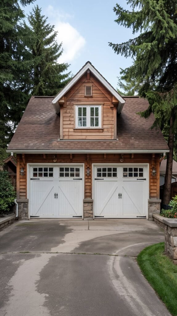 For homes with a rustic or modern farmhouse vibe, I love incorporating dormers with natural wood finishes and exposed beams. This style brings a sense of warmth and coziness that makes the garage feel like an integral part of the home’s design.