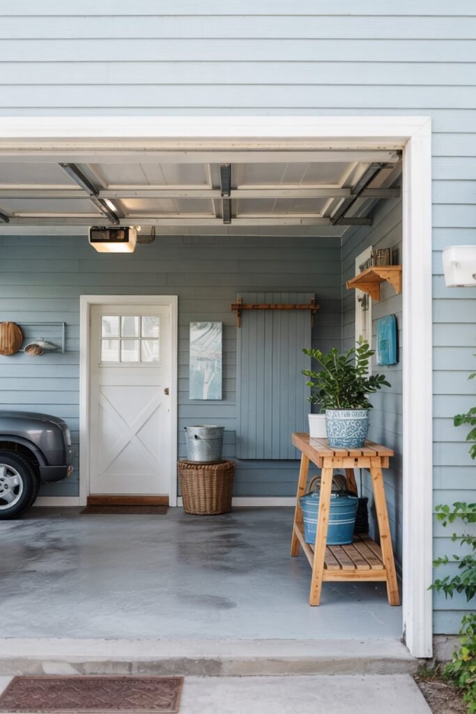 A soft coastal blue brings a serene, beachy vibe to your garage. This calming hue works well with white or wood accents, creating a relaxed atmosphere.