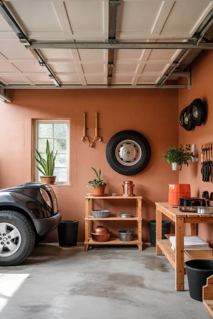 Terracotta walls add a warm, rustic charm to your garage. This earthy tone pairs beautifully with wooden beams or metal accents, creating a cozy, inviting space.