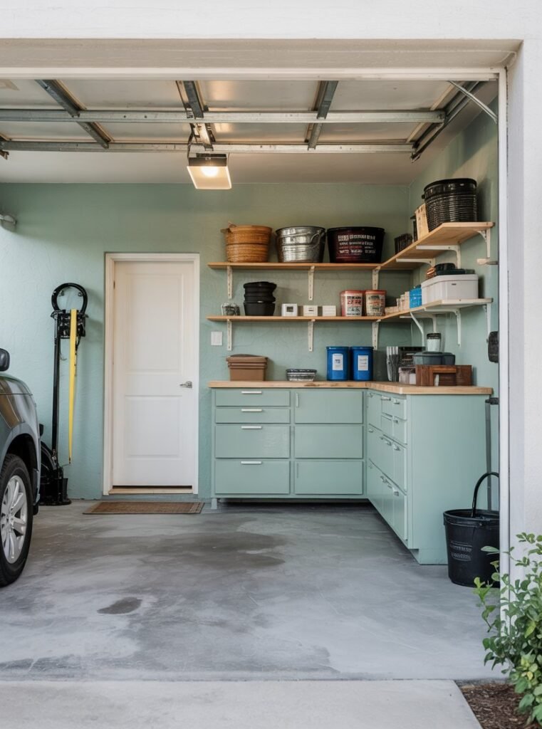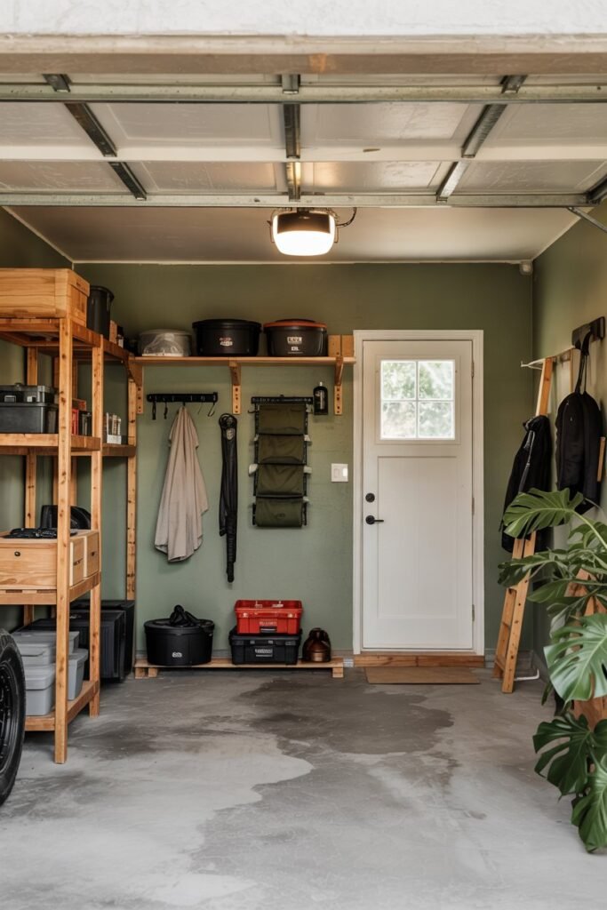 Earthy green tones, like sage or olive, bring a calming, natural feel to your garage. These hues pair well with wooden storage units or concrete floors, creating a cohesive, organic look.