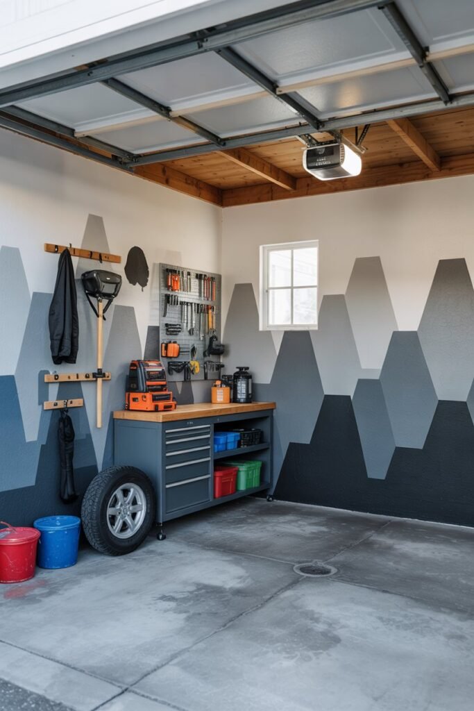 An ombre wall, blending shades like blue to white or gray to black, adds an artistic touch to your garage.