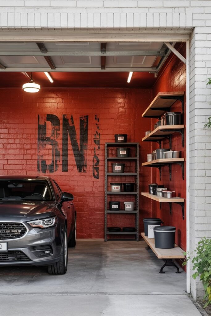 A textured brick red paint mimics the look of exposed brick, adding an urban, industrial edge to your garage.