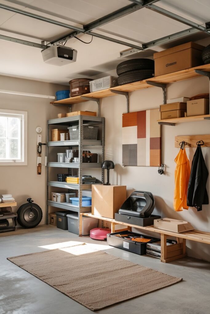 Soft beige walls create a warm, inviting garage that feels cozy yet functional.